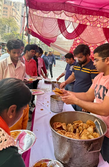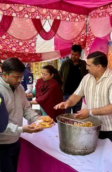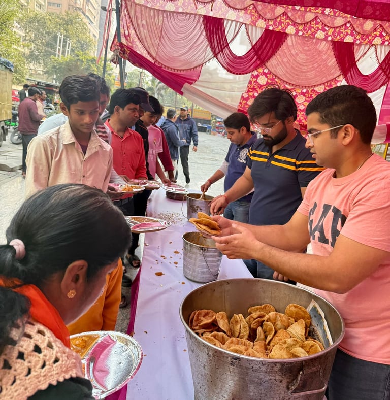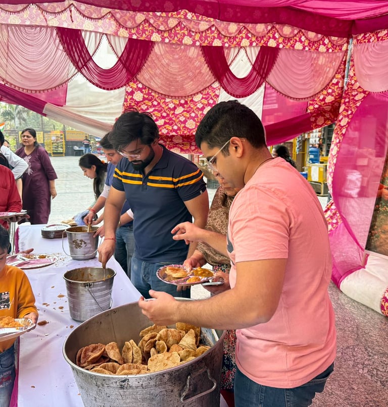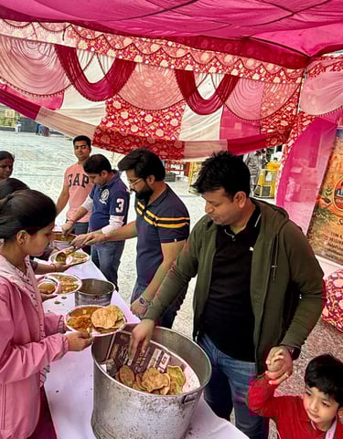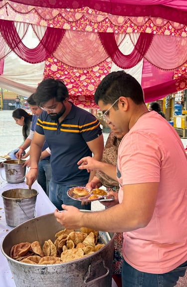 Serving meals and spreading compassion through community gatherings and seva.